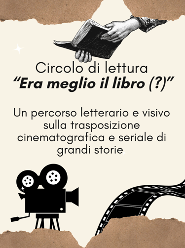 Nell’arco di un mese leggeremo un libro, vedremo un film e/o una serie tv, ci incontreremo per discuterne, osservare brevi spezzoni, analizzare opere simili e divertirci a elogiarle o distruggerle!